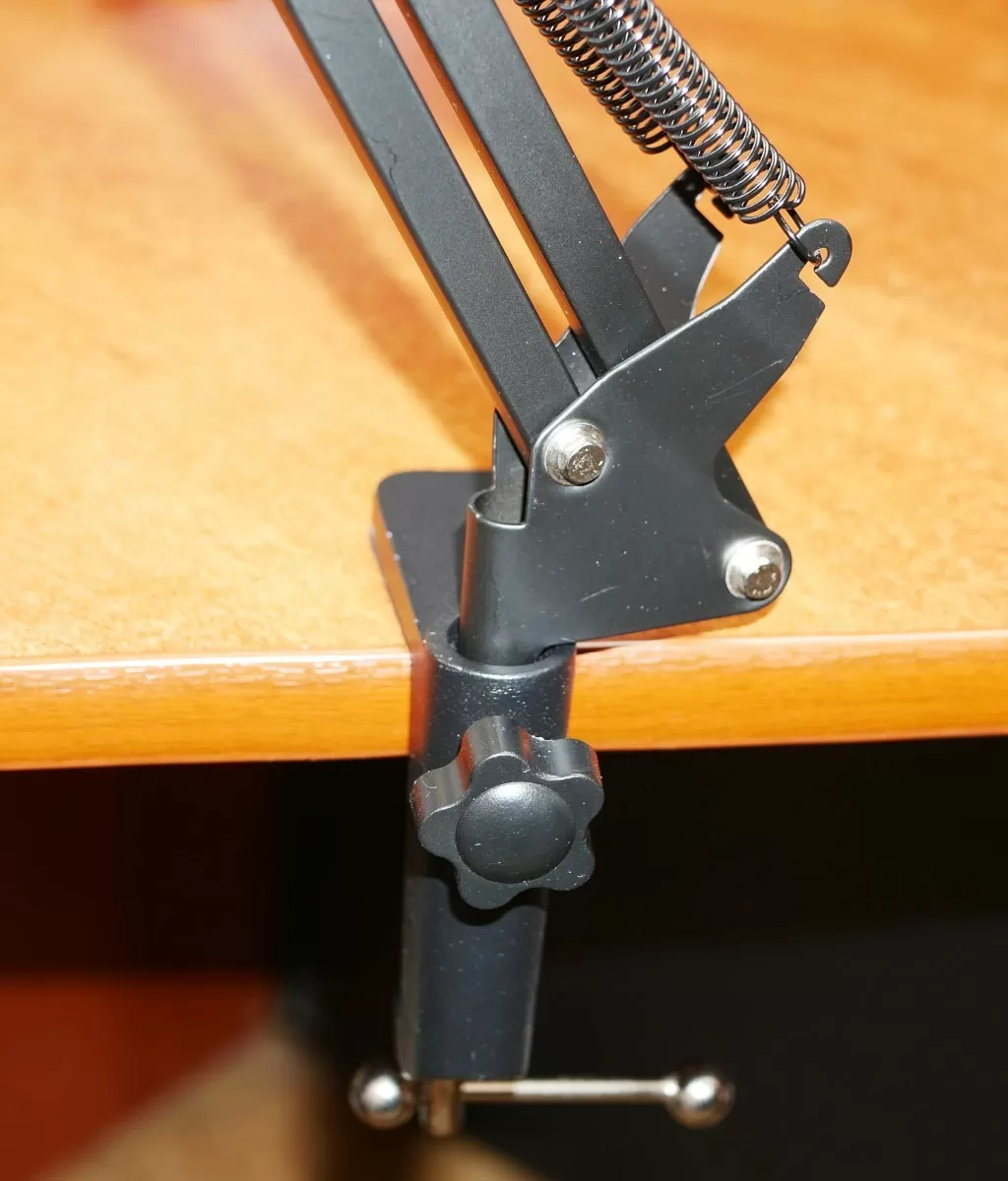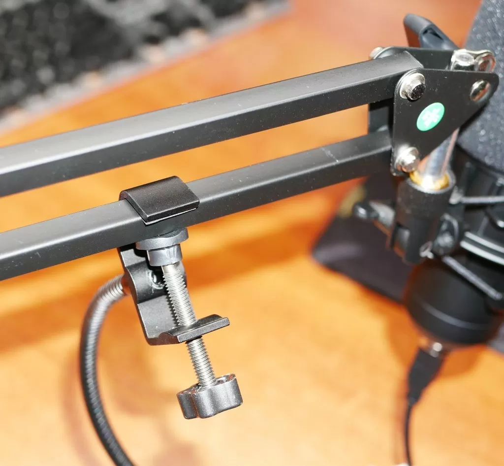 В собранном виде микрофон выглядит внушительно, но это типичное явление для «студийного» микрофона. Стойка позволяет в большом диапазоне отрегулировать положение микрофона в пространстве. Сам микрофон устанавливается в специальный подвес, который гасит колебания. Поп-фильтр имеет гибкую ножку и крепится непосредственно к стойке. Сама стойка крепится к столешнице практически любой толщины.