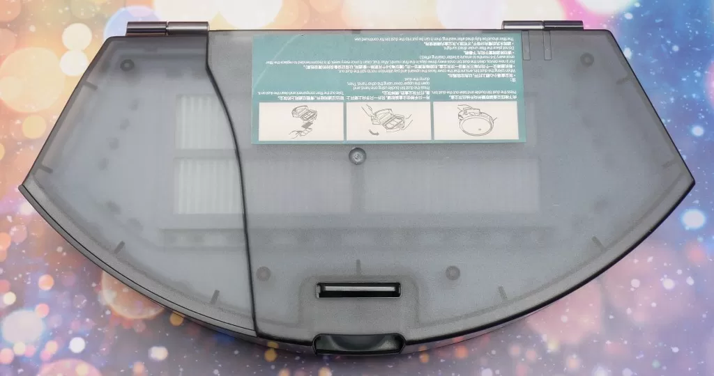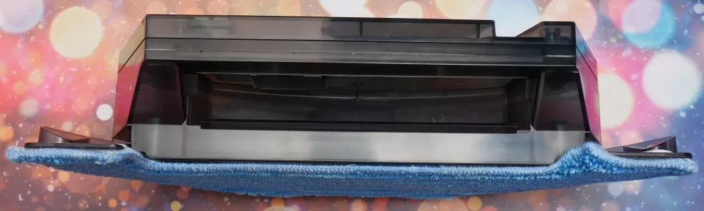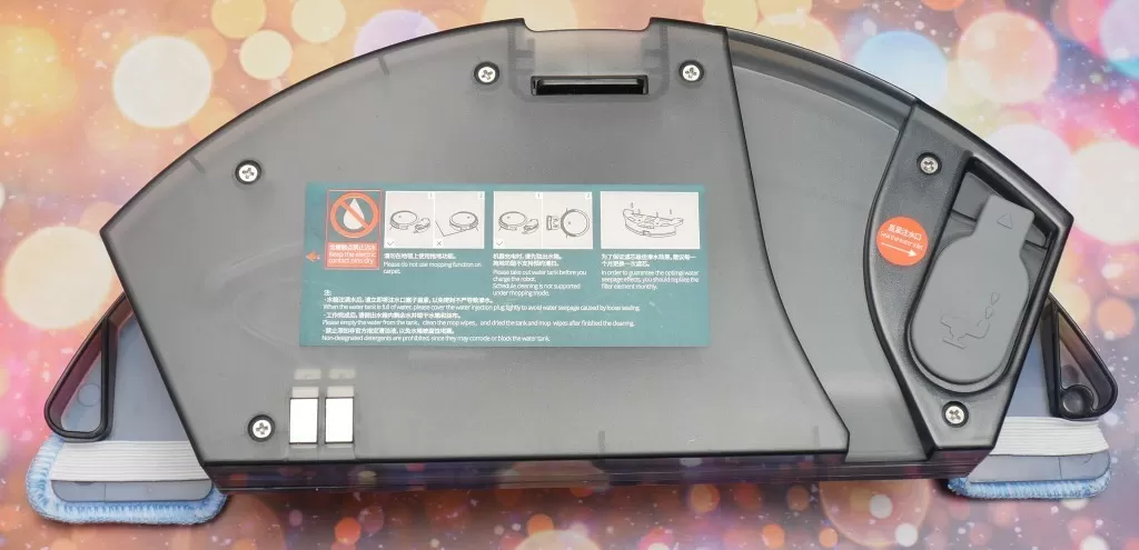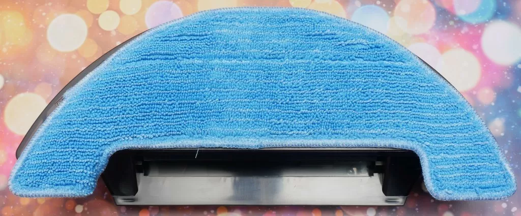 Также в комплекте идёт контейнер для влажной уборки. Сухая и влажная уборки осуществляются раздельно, зато каждый из контейнеров имеют приличный объём. Так, ёмкость для залива жидкости имеет объём в 310 мл, причём установлен насос, есть возможность регулировать скорость подачи воды из приложения на смартфоне (о нем – дальше), что гарантирует равномерную подачу и отсутствие протечки во время простоя. Тряпка для уборки конечно же съёмная (ведь после уборки её нужно будет чистить).