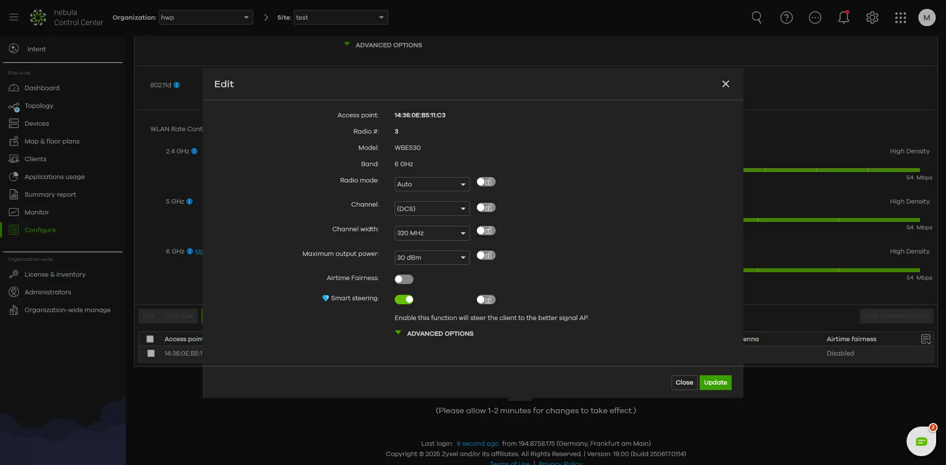 Для корректной работы бесшовного перехода между точками необходимо обеспечить одинаковый режим аутентификации на всех устройствах и активировать соответствующую функцию в настройках каждой точки доступа. У Zyxel эту процедуру удобно контролировать через облачную систему Nebula Control Center.