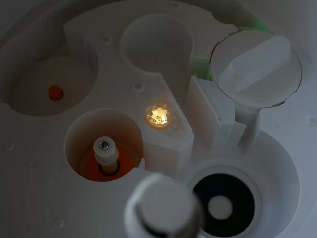 Снимаем контейнер для воды. Из интересного – УФ лампа для обеззараживания воды, она находится в специальном отсеке со съёмной крышкой. Также нельзя не отметить светодиодную подсветку. Кому она не нужна – может её отключить.