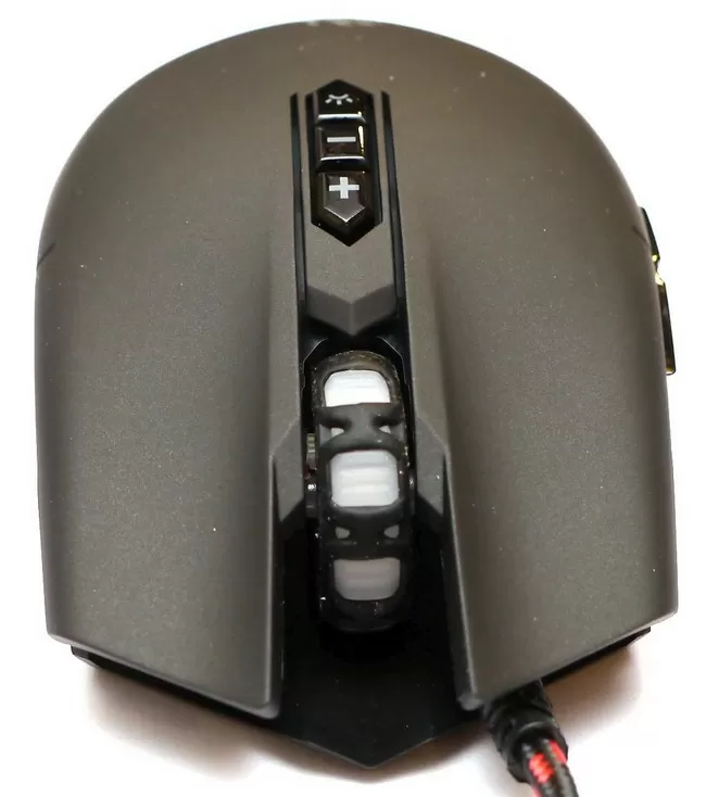 Под скроллом – три дополнительные кнопки: две из них для изменения чувствительности сенсора (500/1000/1200/1600/2000/3200 CPI) и одна для переключения режимов работы встроенной светодиодной подсветки.