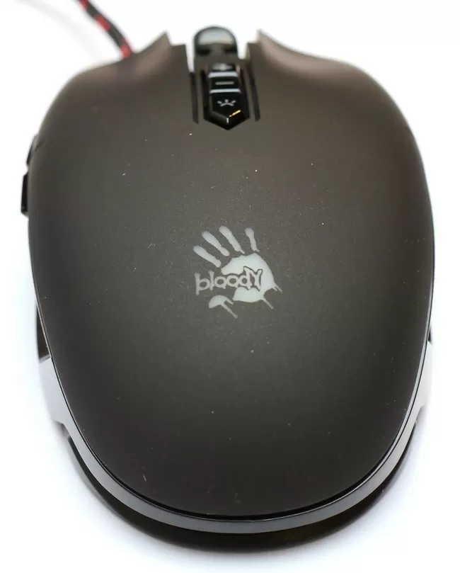 Начнём с того, что A4Tech Bloody Q80 – это полноразмерная мышь, её размеры составляют 126х73х40 мм. Мышка не «горбатая», за счёт длины и формы основных кнопок – пальцы прекрасно полностью ложатся на корпус мышки. Хотя никто не запрещает использовать и «когтевой» хват (когда указательный и средний пальцы согнуты и касаются мышки только кончиками).