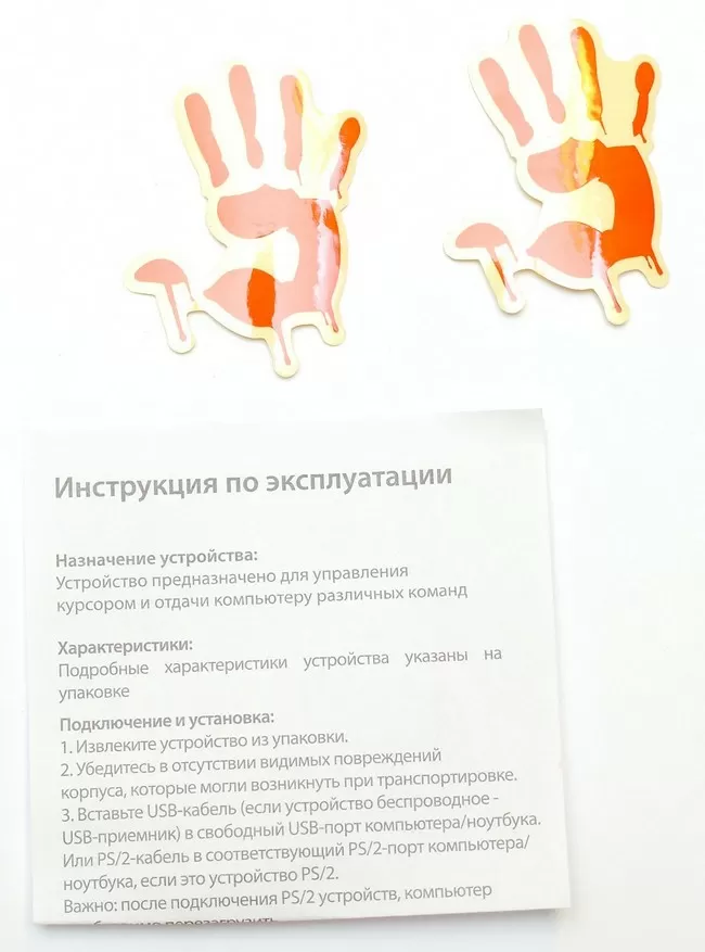Комплектация ожидаемо простенькая – помимо самой мышки в коробке можно найти лишь пару фирменных наклеек да руководство пользователя.